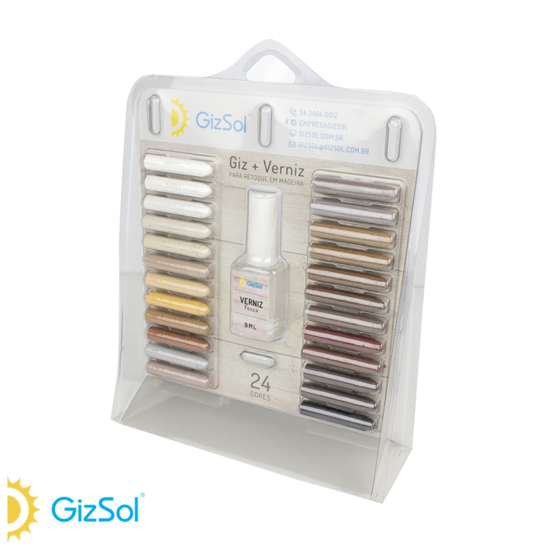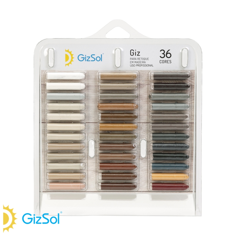 Pode ser utilizado em uma infinidade de superfícies: madeira, mdf, mdp, aglomerados e compensados. O giz para retoque é comercializado em diversos formatos e cores, para atender vários ramos de aplicação.